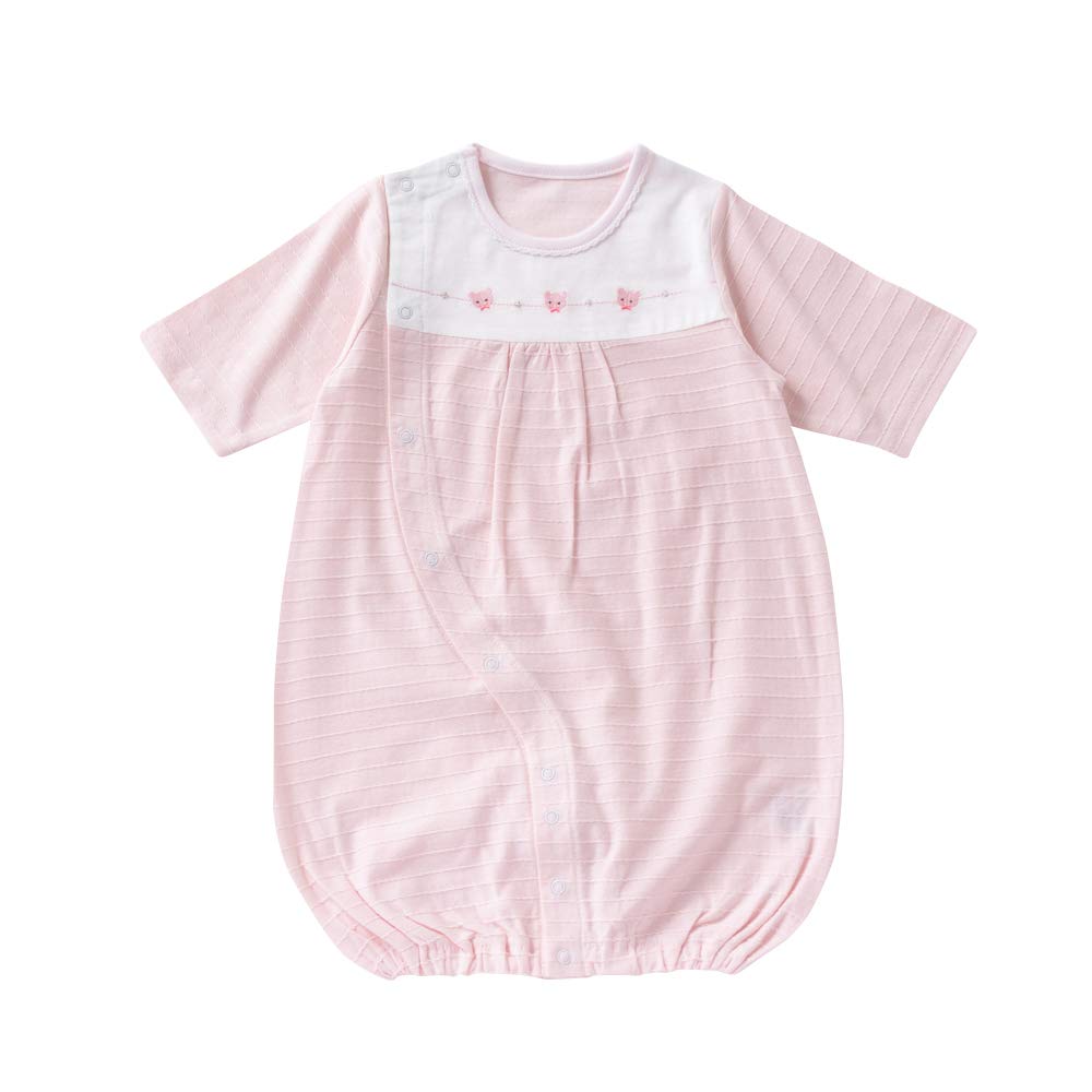 商品名:[クリーム デ ココ] ケーブル 天竺 くま 刺繍 七分丈 七分袖 ツーウェイオール [股スナップ付け替え/2way] 新生児 赤ちゃん 綿100% 日本製 50-70cm (ピンク)