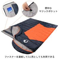 【寝心地よい封筒型】自由に動かせる封筒型で、伸縮性も兼ね備え、寝返りできる窮屈感のない寝心地を提 供できます。同じモデルなら、ファスナーで連結し、2人用の大型寝袋に転換できます。小さな子供を挟んで、川 の字になって眠れます