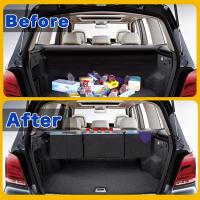 汎用の車用収納バッグは、散らかりがちなラゲッジルーム(ラゲッジスペース)の収納スペースをスッキリ整った空間に、効率的に使用するのにおススメです。ふとした瞬間に散らかったトランクを見られて気まずい雰囲気になることもありません。 組み立てに工具不要な取り付け簡単設計。さっと広げて、ヘッドレストに吊り下げるだけの簡単装着。ベルトの長さも調節可能でカバー付きなので見た目もすっきり。大きい荷物の時はカバーを外しても使えます。 荷物が無い時は、折りたたんでコンパクトに。必要になったらさっと取り出して簡単に組み立てられます。4つのポケットは荷物ごとに収納を分けられるのも魅力、開閉はベロクロ式(面ファスナー)なので小さなお子様にも安心です。 耐久性抜群の600D、撥水加工、オックスフォードナイロン製。お手入れも簡単、汚れたら濡れたクロスでさっとひと拭きお手入れも簡単。SUV、ステーションワゴン、バン、クーペ、軽自動車のラゲッジルームに最適です。 幅90×奥12×高さ28cm 素材:オックスフォードナイロン 開閉方式:ベロクロ・長さ調整ストラップ カラー:ブラック(カバー縁取り部分グレー) ※モニターの環境により、色の見え方に若干差が生じる場合がございます。 ※設置予定のお車に設置できるサイズかご確認いただきますようお願い致します。