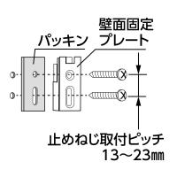 ??【取付方法】(1)パッキンを壁面固定プレートの裏側に貼り、止めねじで固定します。止めねじは確実に締め付けてください。締め付けないとガタツキの原因になります。(2)本体を壁面固定プレートの上からスライドさせ、パチッと音がするまで確実に押し込みます。