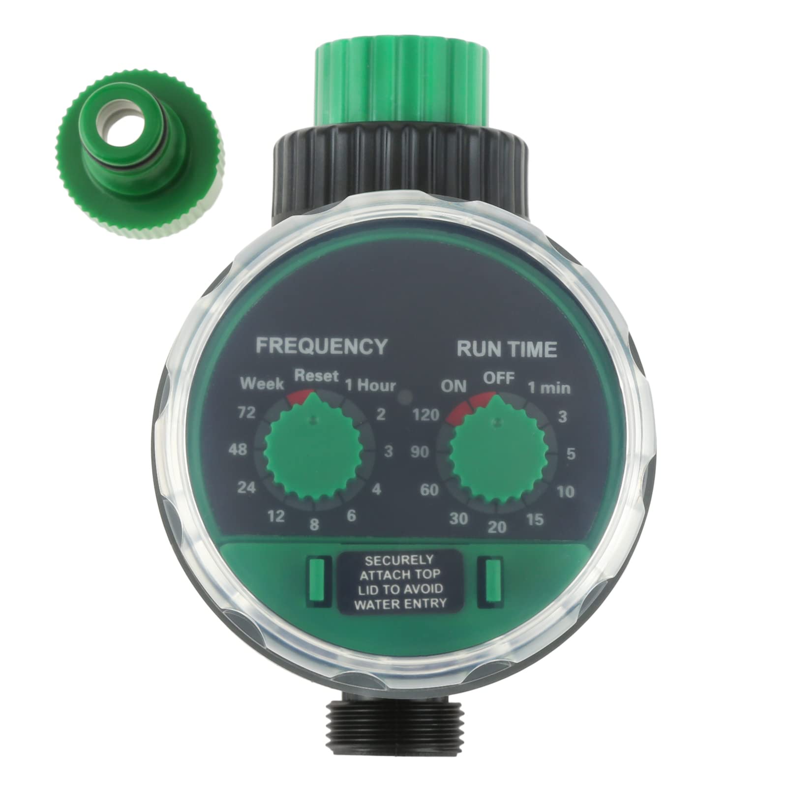 散水時間と水循環の両方をロータリースイッチで制御できます。異なる時間間隔での灌漑や運行時間などを設定することができます。時間を設置すれば、散水タイマーが自動に運行します。設置する方法が簡単なので、若者でもお年寄りでもすぐ使えます。