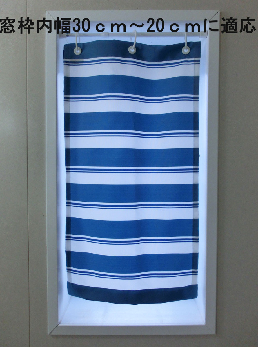 浴室窓の小さなカーテン幅40cm丈75cm お風呂のカーテン 目隠し 縦長窓用 ヨコストライプ ブルー系 リング付