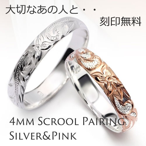 ペアリング ハワイアンジュエリー 指輪 安い 2本セット 刻印無料 シルバー925 4mm ピンク クイーン レビューを書いて送料無料