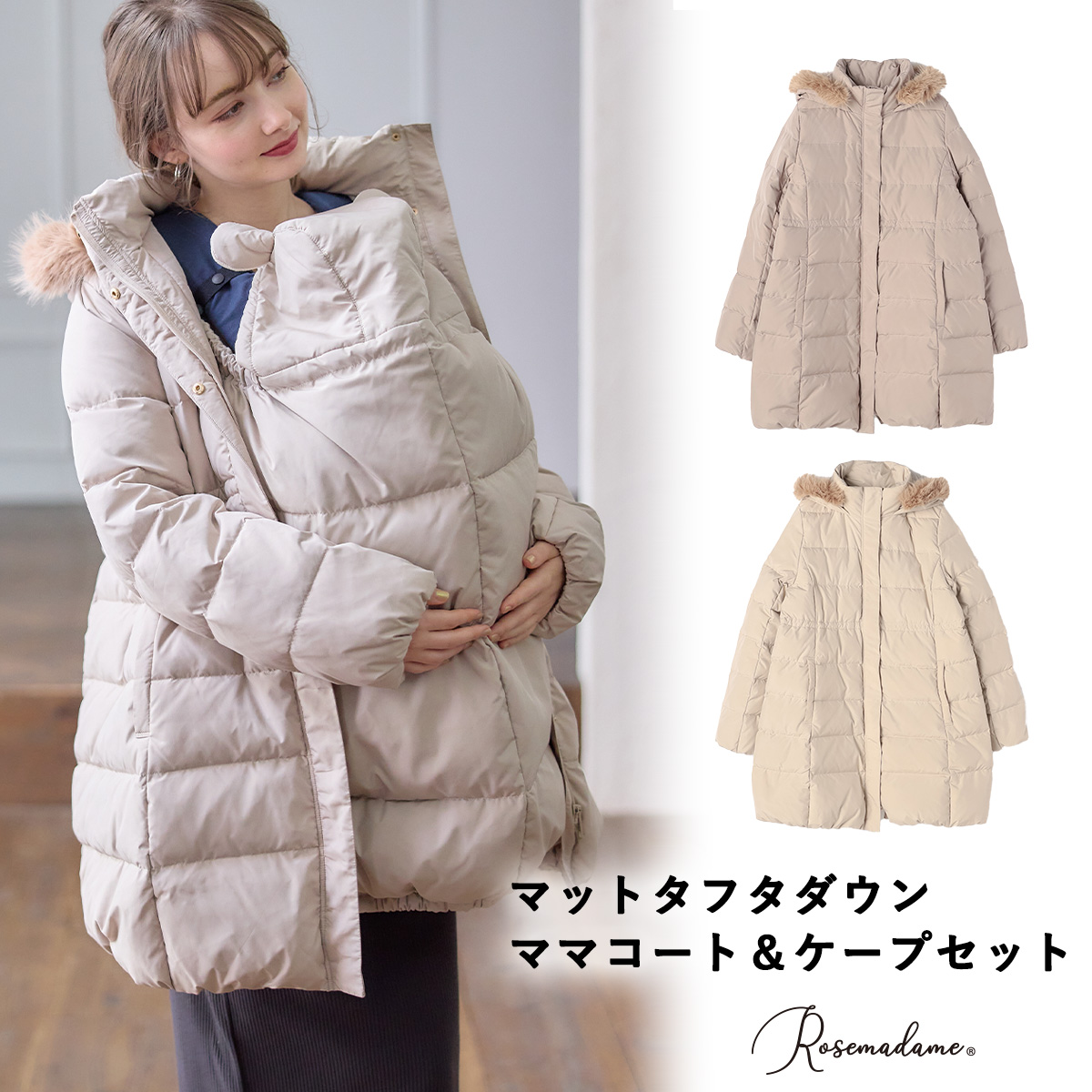 ダウンコート&ベビーケープセット ママコート ママダウンコート ベビーケープ 2点セット ダウン フェザー あたたかい 軽い タフタ生地 風を通しにくい ファー取り外し可 3WAY 抱っこ紐 ベビーカー ローズマダム Rosemadame 産前 産後 レディースコート プレゼント ギフト 防風 防寒 ダウンジャケット 妊婦 ママ 妊娠 くまみみ ケープ あったか シンプル おしゃれ オフベージュ モカ かわいい 長く使える