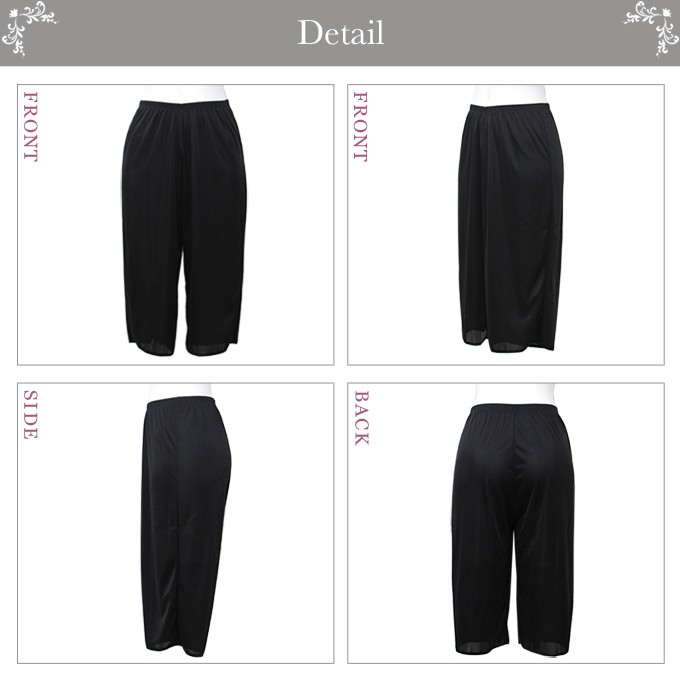 無駄な装飾は一切せず、透け防止・べたつき防止・下着のライン写り防止としっかり機能付きでかさばらない優れものです。ガウチョの裏地としても最適です!