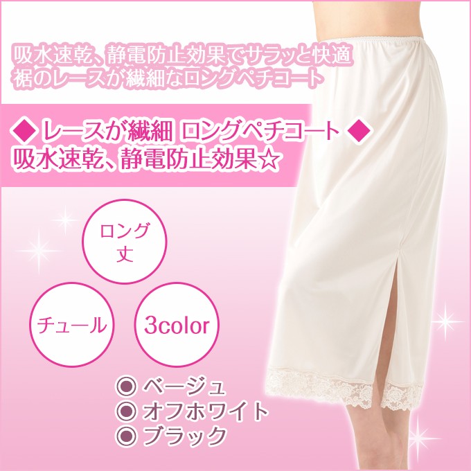 レース ロング丈 ペチコート スカート 吸水速乾 静電防止効果 日本製 国産 レディース ペチスカート 冠婚葬祭 ランジェリー レディース インナーボトムス mail