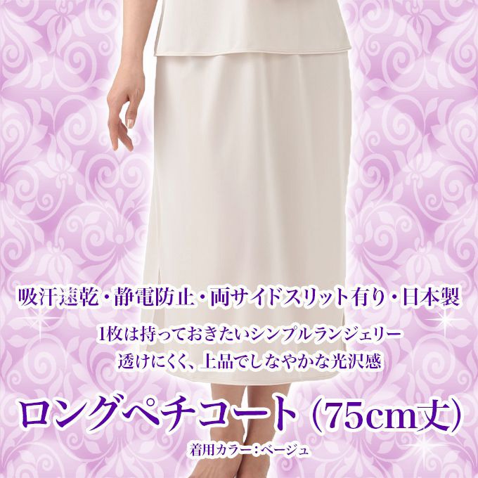 ロングペチコート ロング丈 吸水速乾 静電防止効果 使いやすい シンプル ペチコート 冠婚葬祭 ロング丈 浴衣 日本製 75cm丈 母の日 大きいサイズ スカート