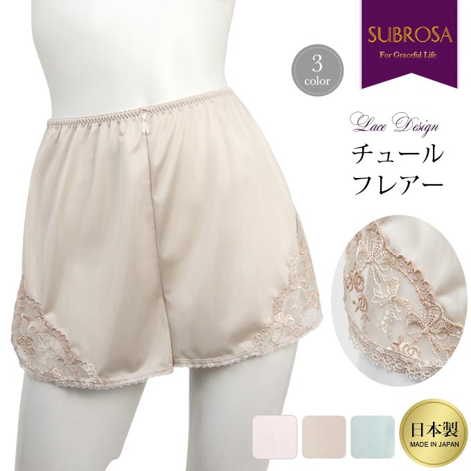 カラー ペチコート パンツ ランジェリー レディース パンツ サテン 股ずれ防止 インナー ボトムス ボトム 日本製 チュール フレアーパンツ 大きいサイズ mail