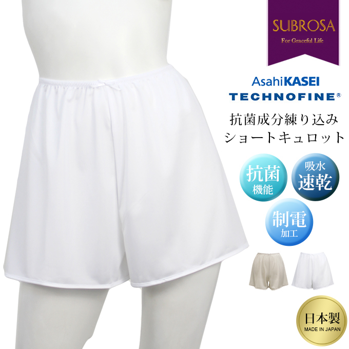 フレアパンツ タップパンツ 抗菌成分 ショート キュロット 旭化成せんい テクノファイン 股ずれ防止 下着 ぺチコート ぺチパンツ 日本製 インナーウェア