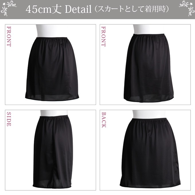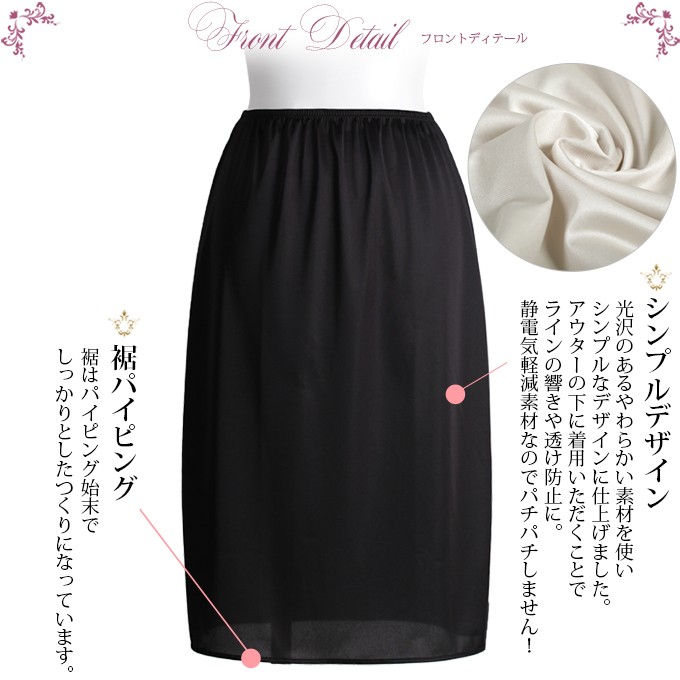 光沢のあるやわらかい素材を使いシンプルなデザインに仕上げました。アウターの下に着用いただくことでラインの響きや透け防止に。静電気軽減素材なのでパチパチしません!