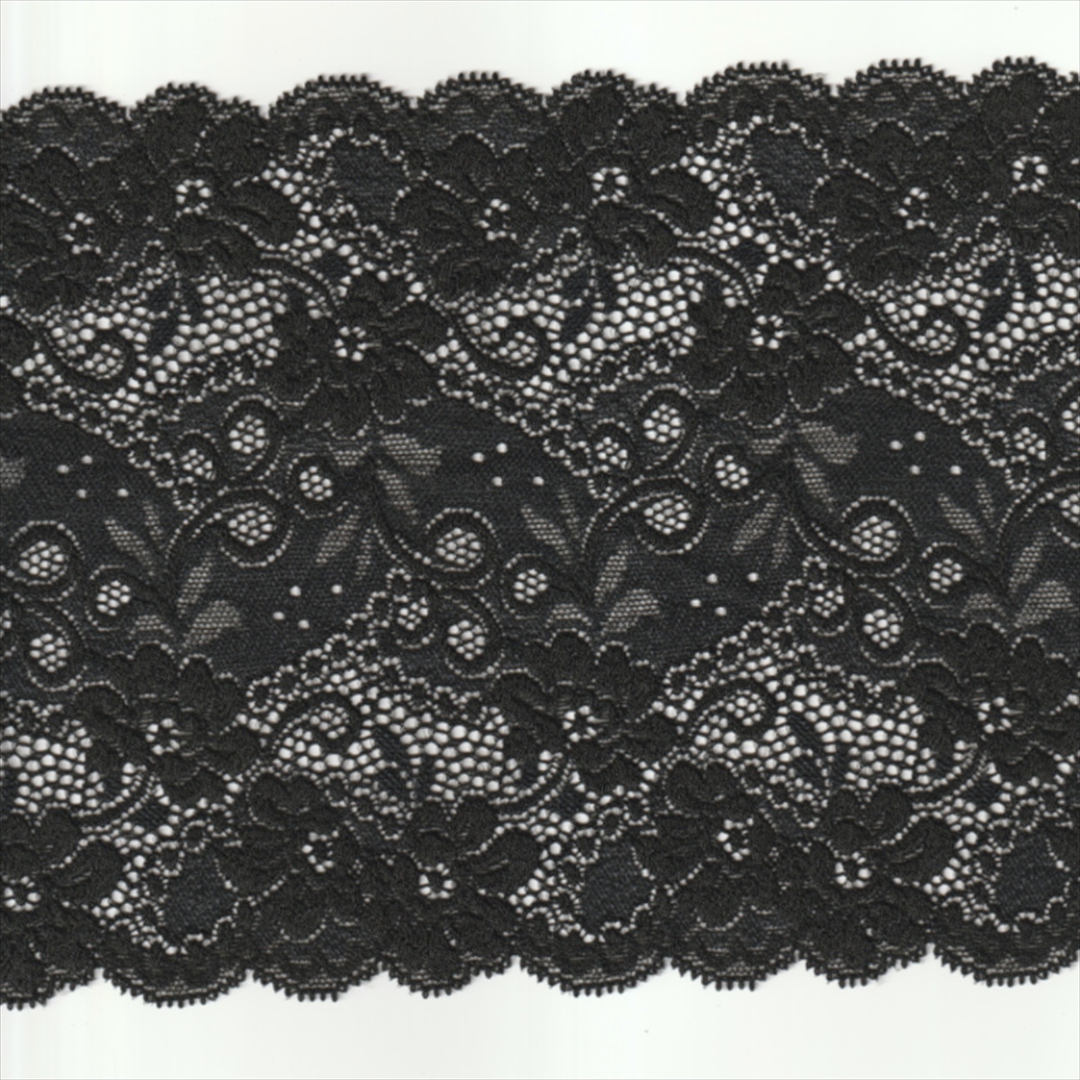 ストレッチ レース生地 ブラック 幅168mm ナイロン ポリウレタン その他 / カット売り ハンドメイド DIY 手芸用 アクセサリー 生地 単品 レース 【post】