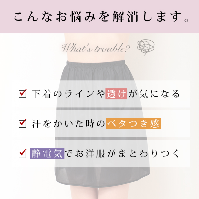 春夏:汗を吸ってサラサラ快適!薄地のスカート・ワンピースの下に履いて透け防止!まとわりつくのを防止!