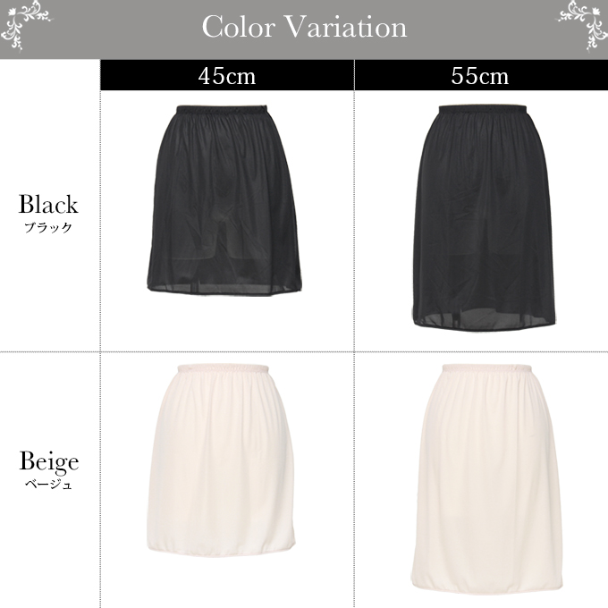 日本製 ペチコート スカート 45cm 55cm 丈 ショート 下着 レディース ランジェリー ぺチスカート ショート丈 ひざ上 透けない 透け防止 フレア キュロット mail