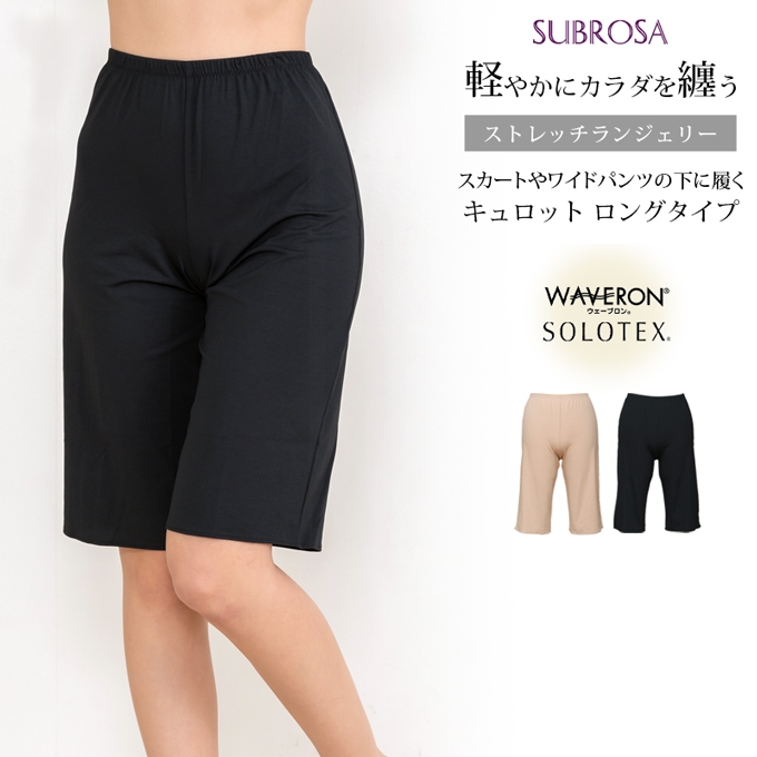 日本製 よく伸びる ストレッチ ランジェリー ウェーブロン ソロテックス ペチコート パンツ 55cm 丈 ロング 下着 レディース ぺチパンツ ひざ丈 透けない mail