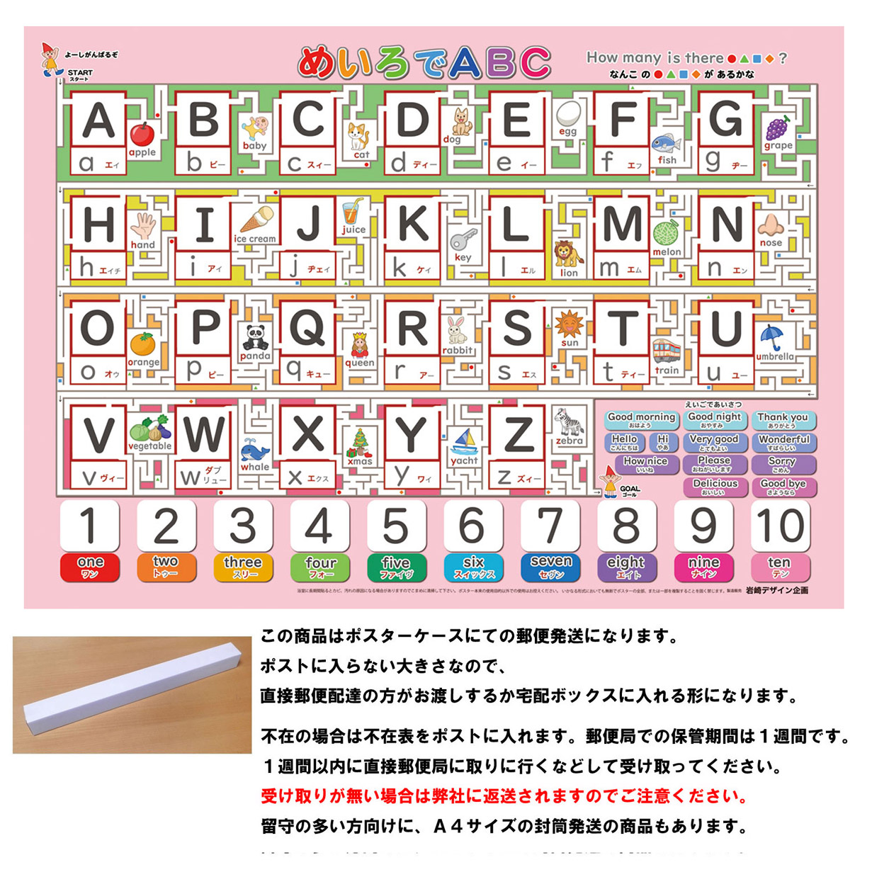 「めいろでABC」【ポスターケース発送】 A3サイズ アルファベット表 お風呂ポスター、幼児から(4歳、5歳〜小学生)お受験、学習、知育用