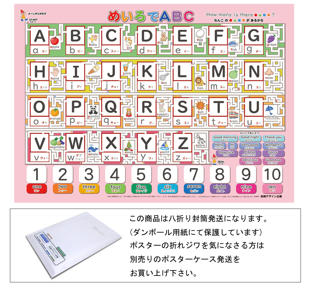 「めいろでABC」【封筒発送】 A3サイズ アルファベット表 お風呂ポスター、幼児から(4歳、5歳〜小学生)お受験、学習、知育用