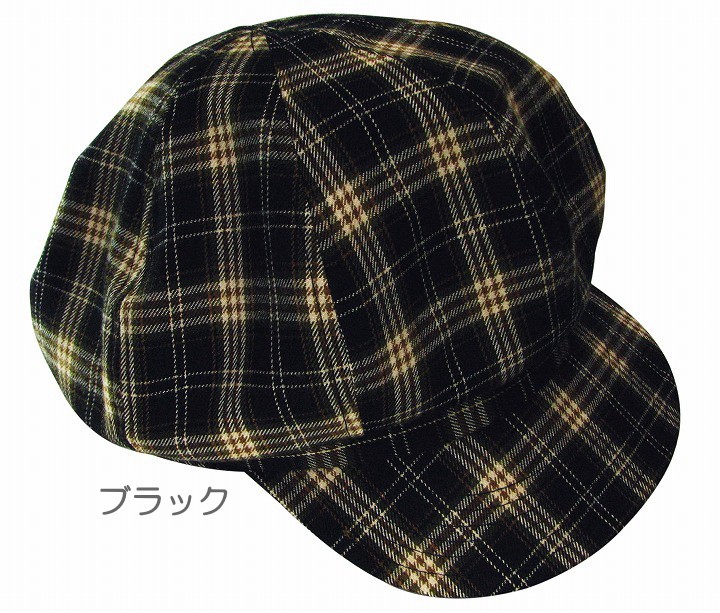 落ち着いた色合いのタータンチェック生地を使用した標準的な8枚はぎタイプのキャスケットです(408型)。生地はコットン素材で、布表面が少し起毛になっていますので、やわらかい手触り感が楽しめます。