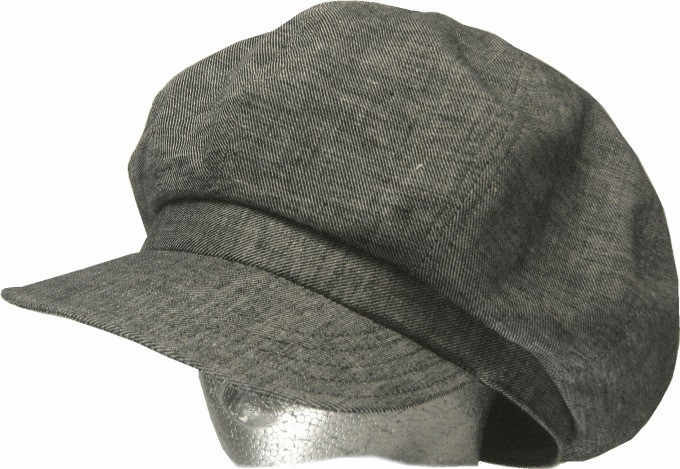 綿麻トップ布で作った、ビックボリウムの403型キャスケット。糸繊維に少し色ムラ(スラブ)があり、表面の綾繊維がはっきりとした生地。ざっくりした手触りですが、薄くやわらかい麻混紡素材です。403型キャスケットは、頭頂部の直径が30cm近くあり、当社の8枚はぎタイプのキャスケットの中で、ボリウムが最大のタイプです。