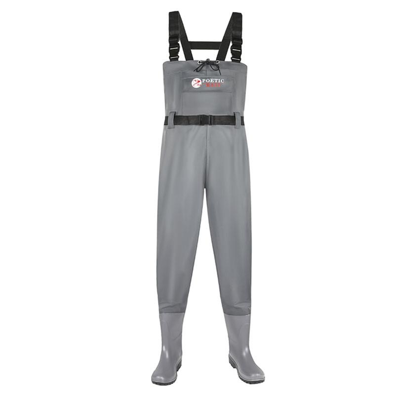 【防水生地】ポリ塩化ビニルでコーティングされた丈夫なナイロン生地、2 層のアッパー生地、強力で効果的な防水。ウェーダーのサイズは 6~14 です。サイズ表を参照してください。