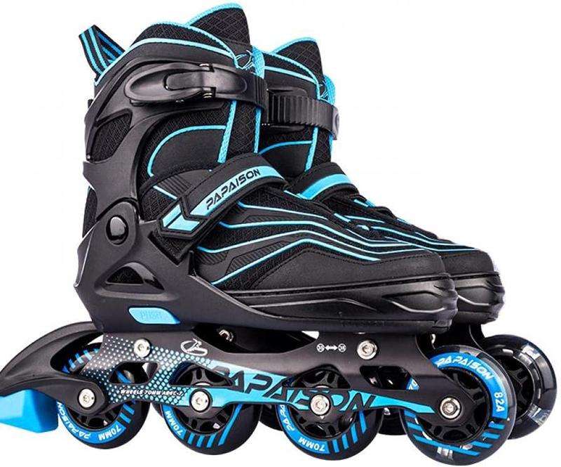 【調整可能なインラインスケート】このインラインスケートS(内寸19.5CM-21.5 CM)、M(内寸22.5CM-24.5 CM)、L( 内寸 25.0CM-27 CM)、。 プッシュボタンを押すことで簡単に調整できます。添付のサイズ表に従ってインラインローラースケートの適切なペアを選択するだけです。