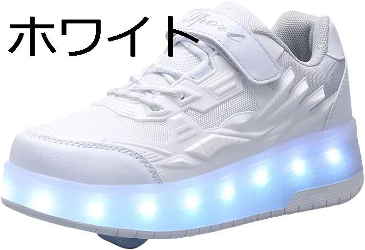 ローラーシューズ 光る靴 子供靴 ローラースケート靴 発光シューズ 白 黒 可愛い キッズ 男女兼用 USB充電 LEDライト ダンス