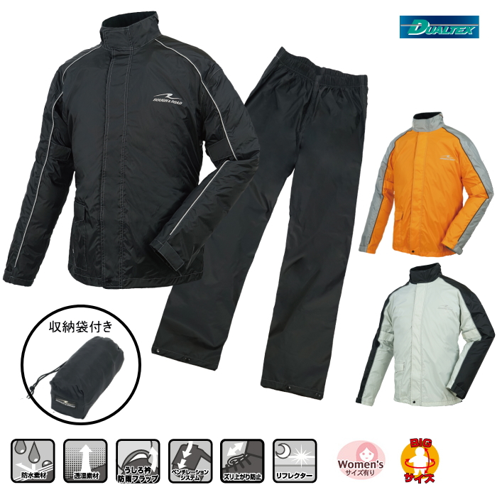サイズ交換可能 ラフアンドロード RR7811 デュアルテックスコンパクトレインスーツ パイク カッパ 合羽 雨具 ROUGH&ROAD