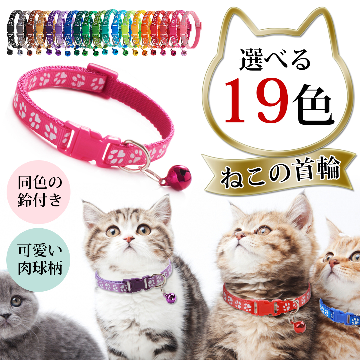 猫首輪 おしゃれ 猫用 ねこくびわ ペット 肉球柄 カラフルバックル 長さ調節可能 鈴付き 種類豊富