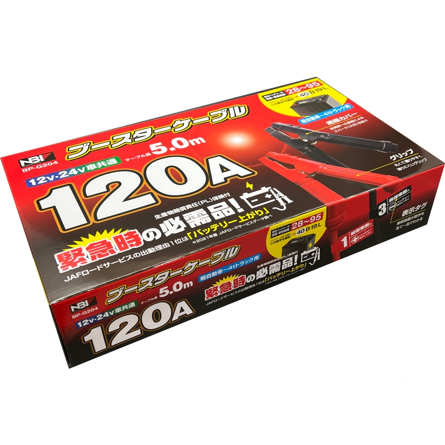 BP-G204 ブースターケーブル 12V 24V共用 120A 5m|トラック用品 カー用品 バッテリー上がり ケーブル ジャンプケーブル バッテリーケーブル 緊急時 必需品 JB