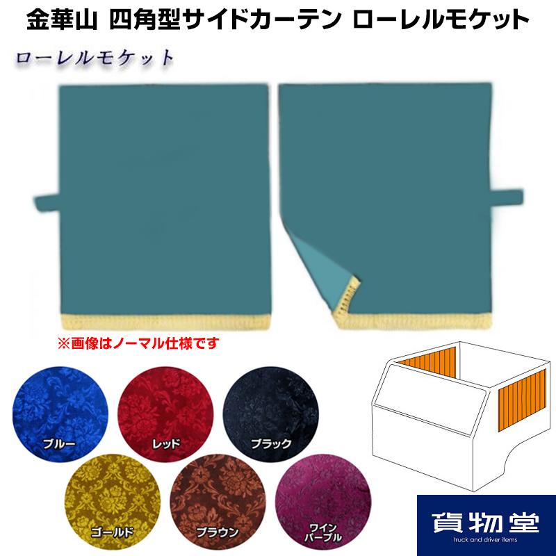 サイドカーテン 金華山 ローレルモケット 四角型サイドカーテン ヨコ100タテ75cm トラック用品 TURN ターン カスタム ドレスアップ 青 赤 黒 金 茶 紫