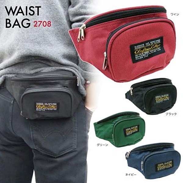 ウエストバッグ ブラック グリーン ネイビー ワイン ウエストポーチ ヒップバッグ ボディバッグ 2708 送料無料