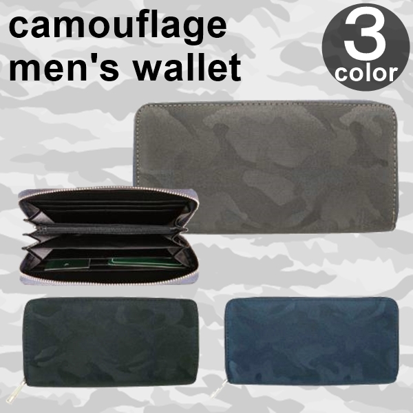 長財布 迷彩ジャガード メンズ財布 財布 ウォレット 迷彩柄 カモフラージュ カモフラ メンズ 紳士 男性 三方束入れ W-397 送料無料