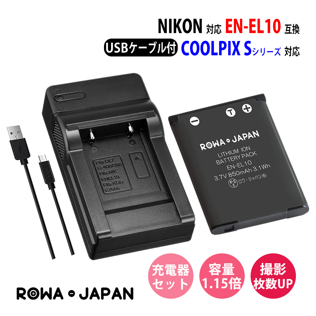 商品説明 | ■EN-EL10 互換バッテリー と MH-63 互換 USB 充電器 のセットです 【充電器仕様】 ■入力:5V/1A ■出力:4.2V/500mA ■寸法:幅47×高さ23×奥行84mm ※純正のバッテリーにも充電可能 ■充電ランプ表示 充電中:赤ランプ点灯 満充電:緑ランプ点灯 ■特徴 1.当充電器は、USBに接続して充電ができます。 2.AC充電器とは違いコンパクトで軽量です。 3.カーチャージャーやPCなどに接続でき、場所を問わず幅広く対応できます。 4.変換プラグを使用することで、コンセント形状が異なる海外でも充電ができます。 ■セット内容 1.互換バッテリー 1個 2.バッテリーチャージャー 3.Type-Cケーブル付属(全長約40cm) |