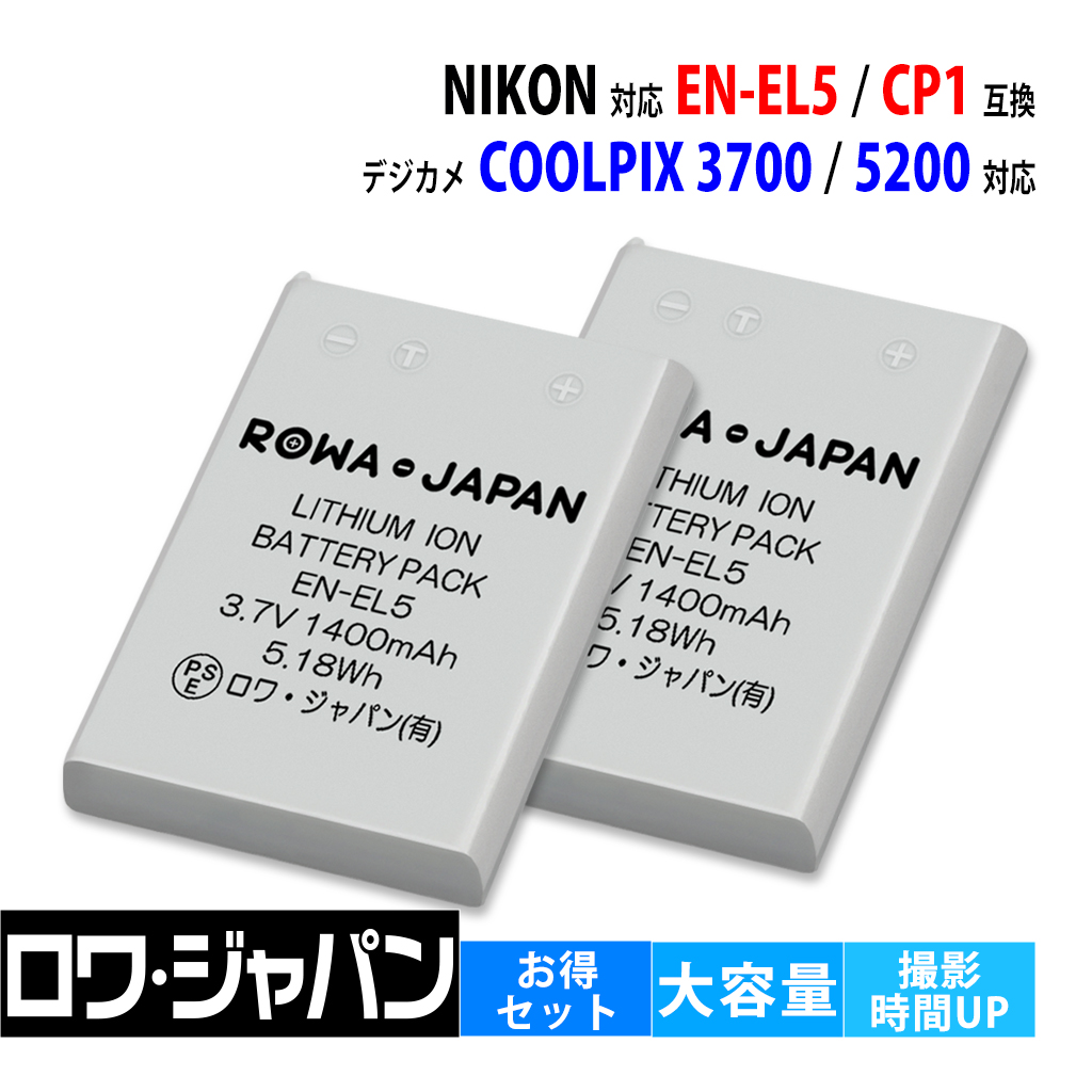 【互換品】 大容量1.27倍 2個セット ニコン対応 EN-EL5 CP1 バッテリー COOLPIX対応 3700 5200 用 ロワジャパン