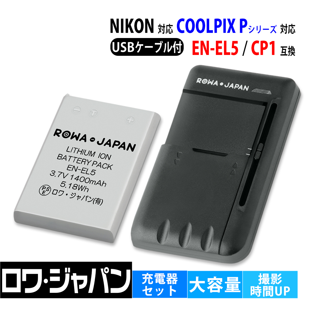 【互換品】 ニコン対応 EN-EL5 CP1 バッテリー と USB マルチ充電器 セット COOLPIX Pシリーズ 対応 ロワジャパン