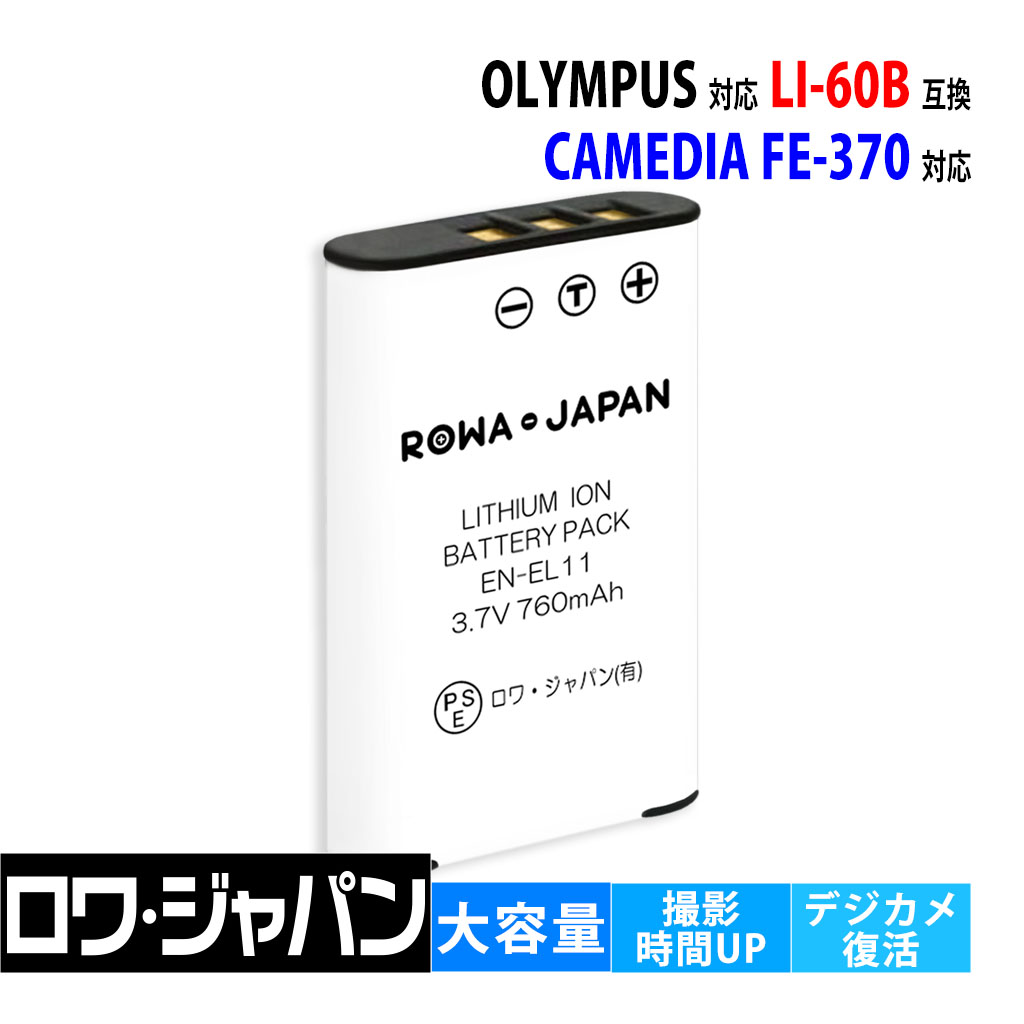 【互換品】 大容量 オリンパス対応 LI-60B バッテリー CAMEDIA FE-370 対応 OLYMPUS対応 ロワジャパン