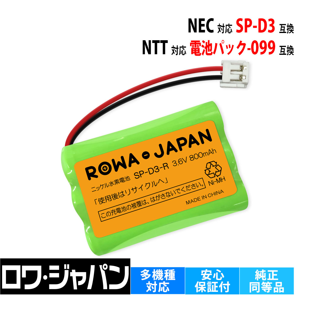 | 互換型番 | ■互換型番 ◆NEC対応 SP-D3 ◆NTT対応 CTデンチパック-099 電池パック-099 ◆ELPA対応 エルパ対応 TSA-221 TSB-221 TSC-221 THB-221 ◆OHM対応 オーム電機対応 TEL-B35 TEL-B85 TEL-B0015H TEL-B2026H ■純正品ではございません |