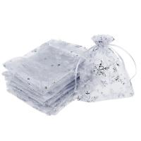 10枚入り 雪 結晶 オーガンジー巾着袋 クリスマス アクセサリーバック ラッピング用品 ギフト用品 リボン スノーフレーク ウィンター