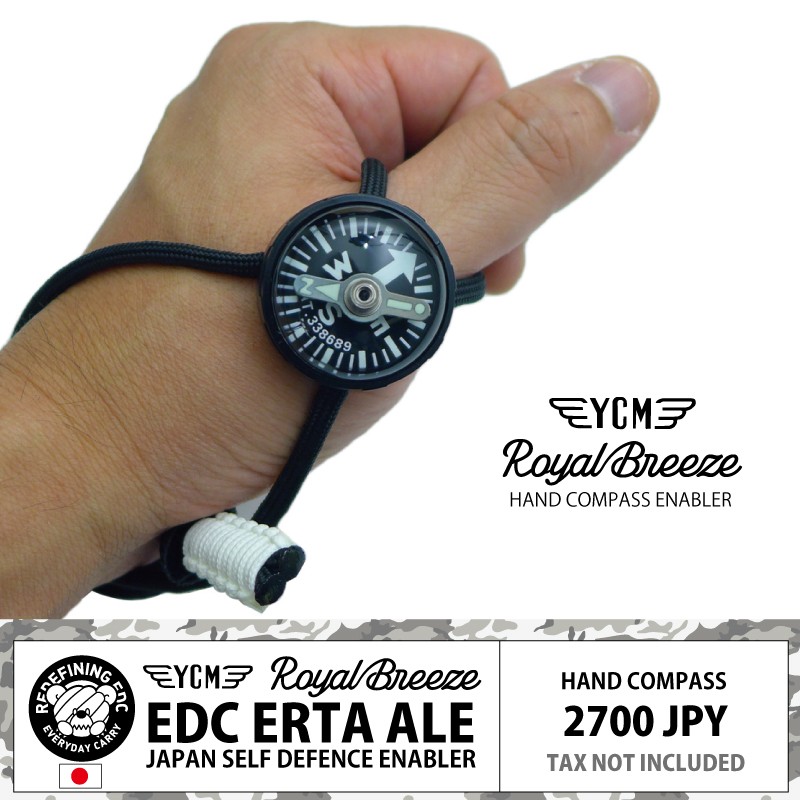 YCM製の特許付きリストコンパスをロイヤルブリーズオリジナルデザインでご提供!カラフルで遊び心があるこの商品、実は高性能リストオイルコンパスです。もともと潜水用に設計されておりダイビング用の20気圧防水性能をもった製品です。その上、日本自衛隊が採用しているデザインとなります。当社のパラコード550マルチバンド「エルターアレ」がセットになった製品です。エルターアレは550パラコード(1本250kg耐荷重)で作られており、トレイルラン、サイクリング、登山、等に小型で軽量なコンパスを携帯できるバンドです。