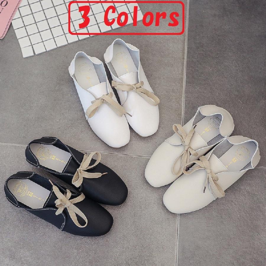 [ロイヤルパイン] ぺたんこ靴 レディース レースアップ スリッポン コンフォート カジュアル ラウンドトゥ 2WAY フェイクレザー 3色