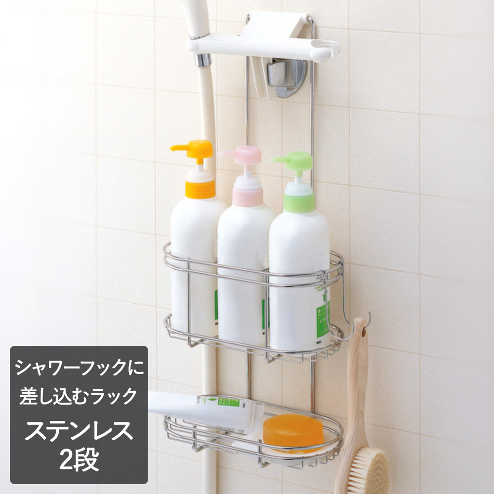 ステンレス シャワーラック 2段 | おしゃれ 収納 浴室 お風呂 棚 ラック ユニットバス シャンプーラック ディスペンサー 風呂場 お風呂場 お風呂グッズ バス