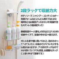 ■ポンプ式シャンプーが3本置ける!2段ラックでいろいろ収納出来てシャワー周りがすっきり片付く