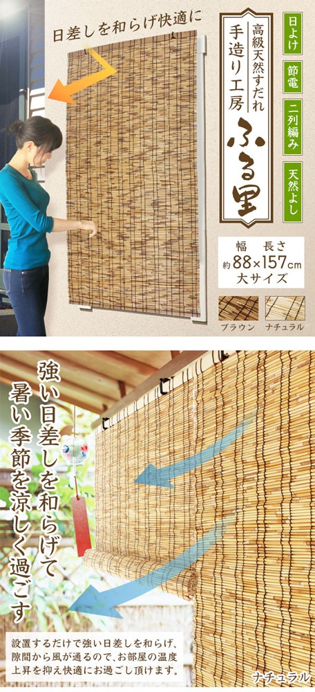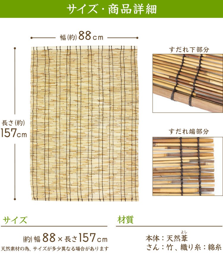 すだれ ふる里 88×157cm 天然葦 | 遮熱 室内 屋外 目隠し 遮光 ベランダ おしゃれ マンション スクリーン シェード 日よけ カーテン 日除け 日差し 巻き上げ 竹