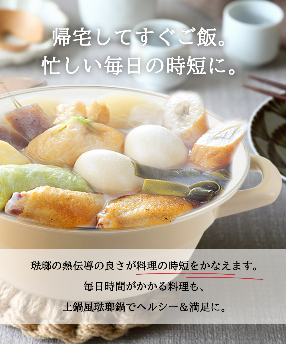 軽くて丈夫な土鍋風ホーロー鍋。