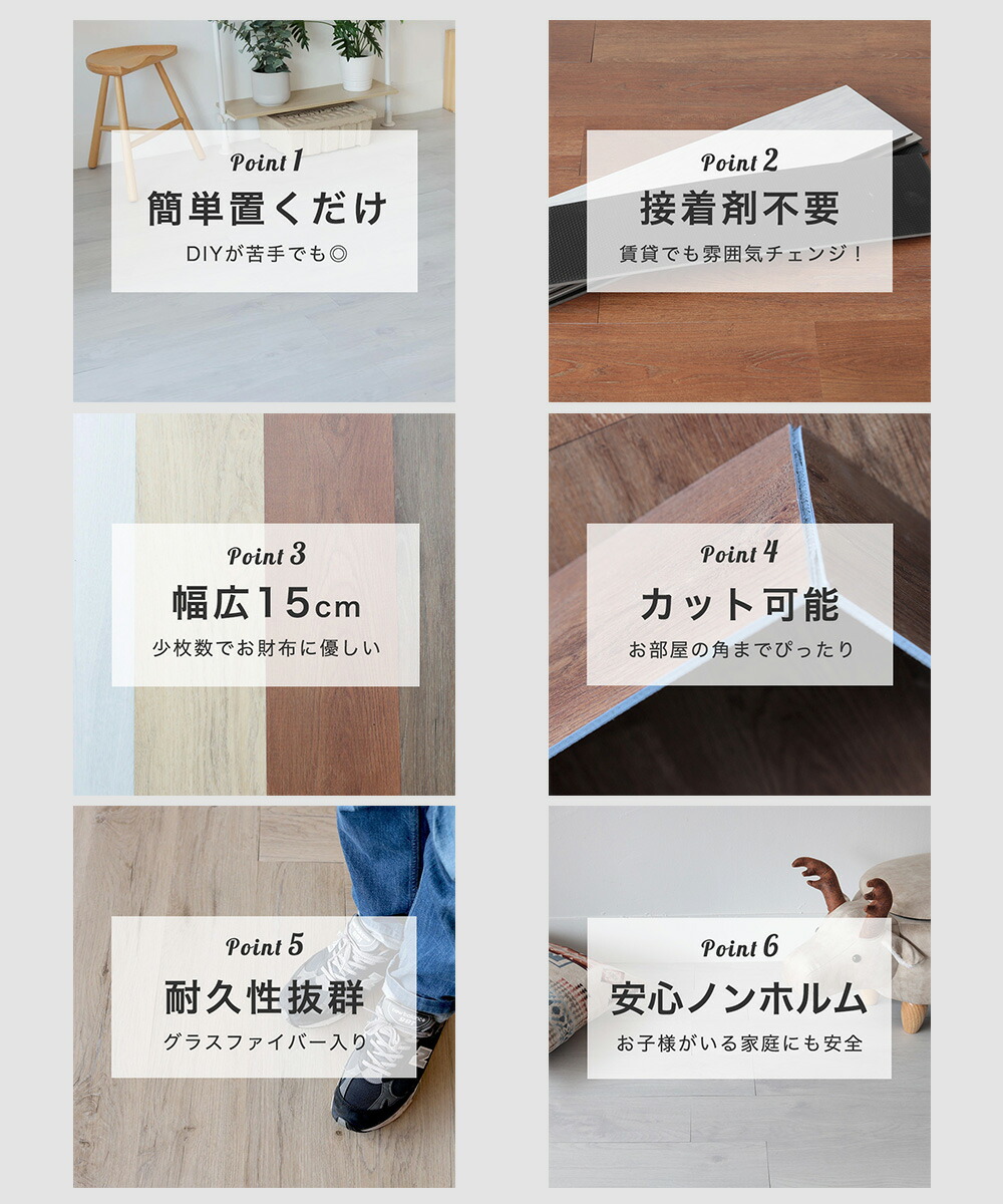 ・平らな場所に設置してください。水平が保たれずに設置されると浮き上がりや段差が生じ、つまづいてケガをする恐れがあります。