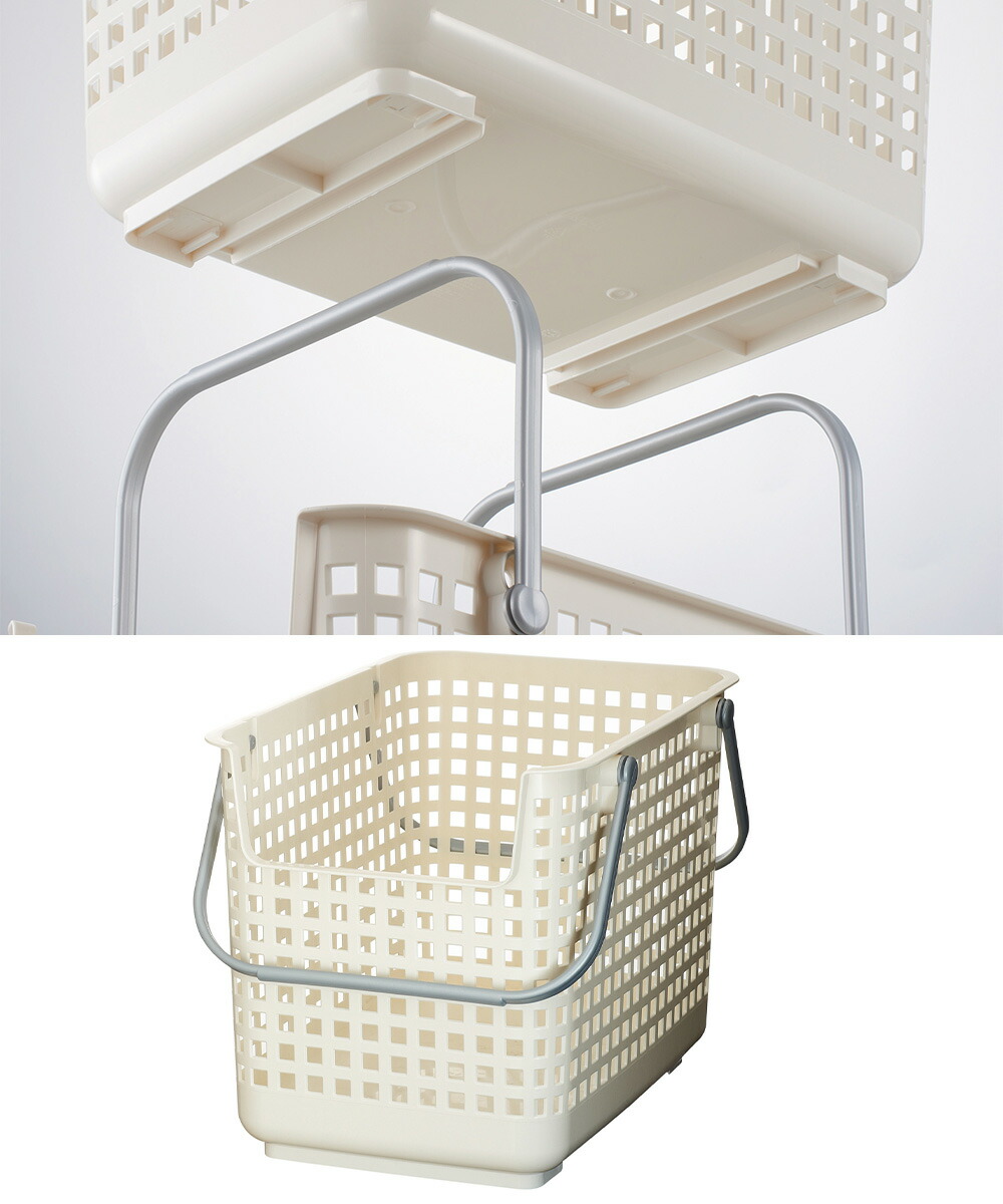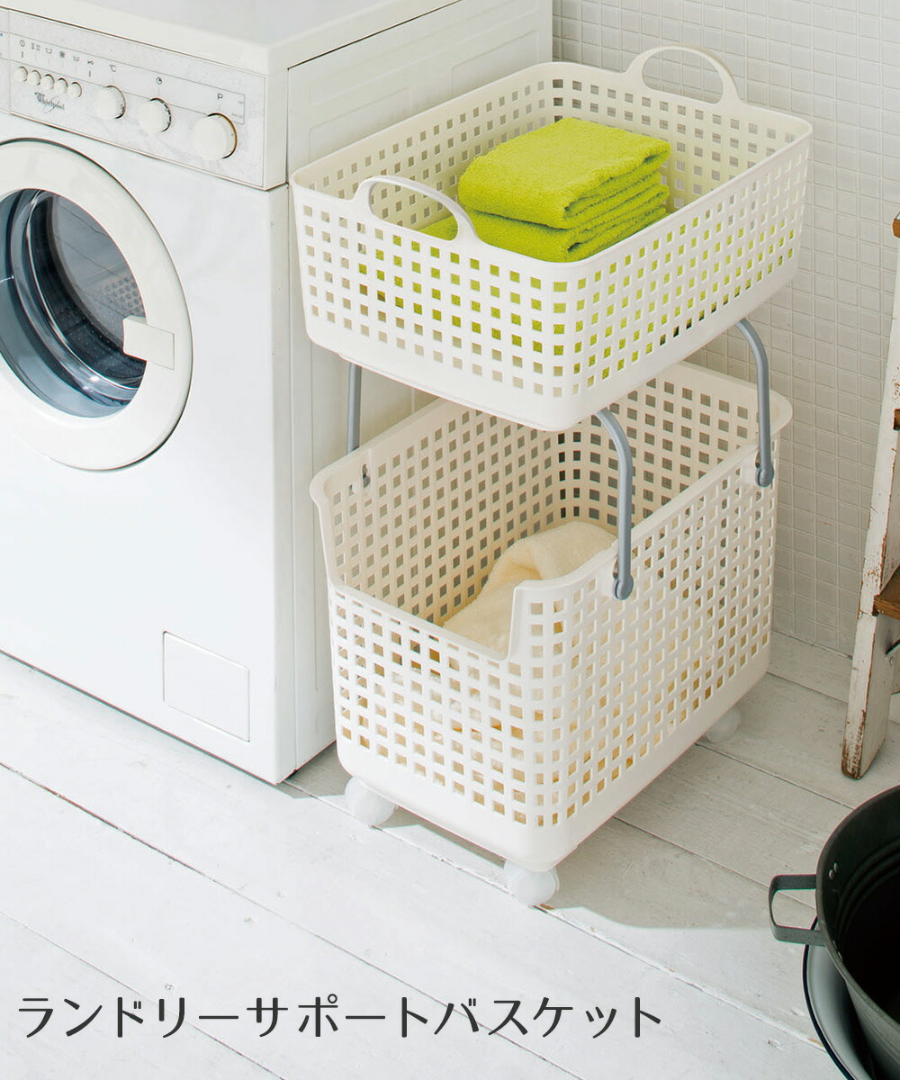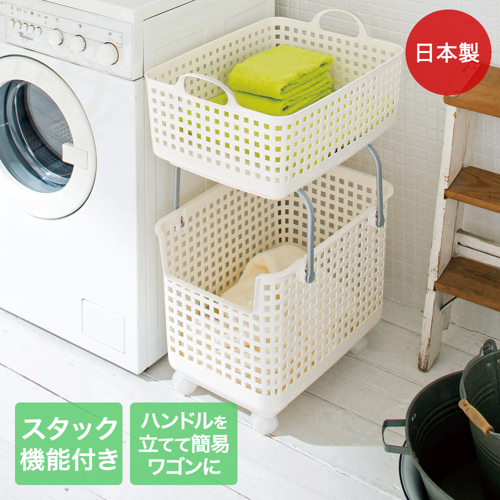 バスケットを積み重ねる事で簡易ランドリーワゴンとして使える。