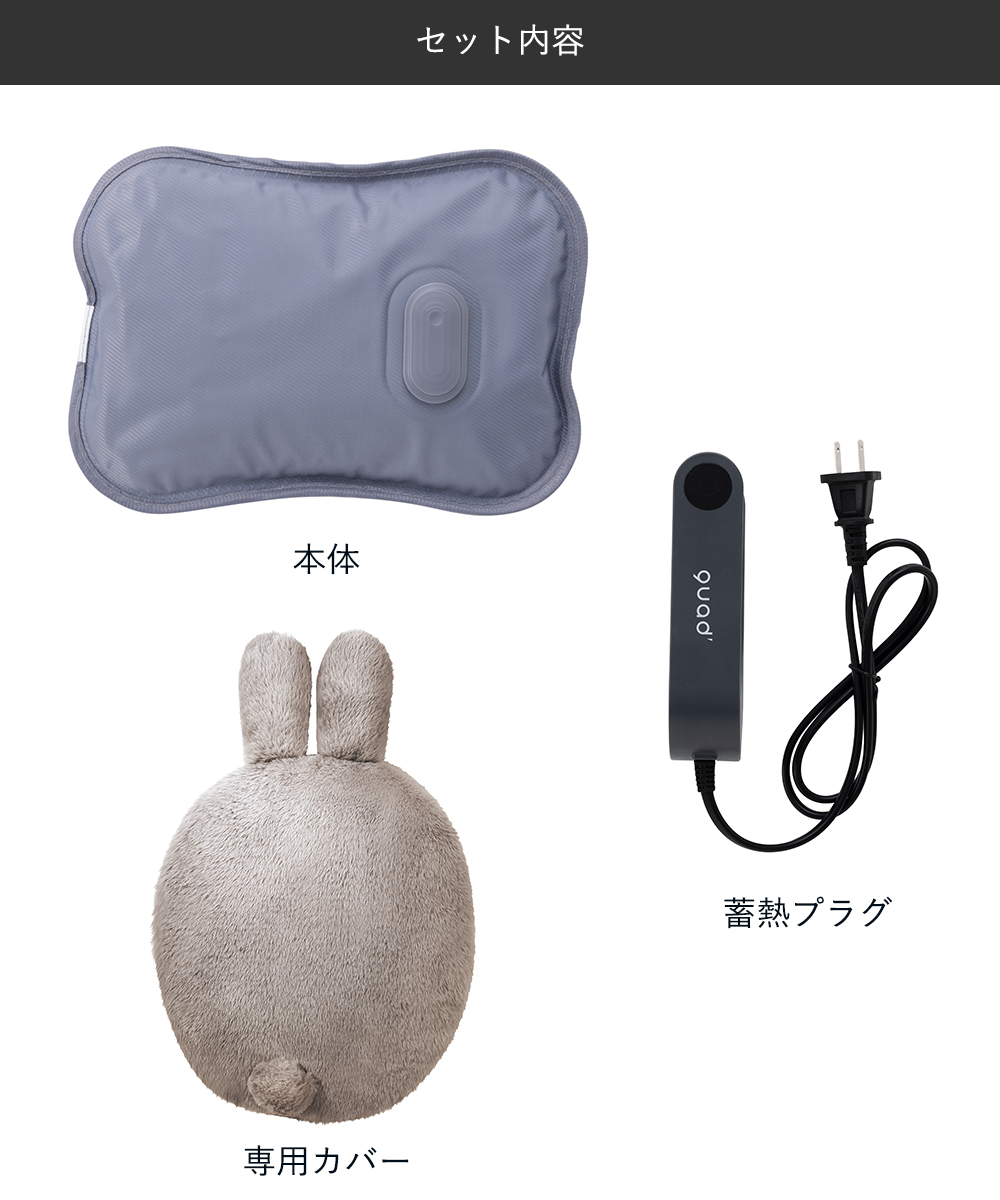専用カバーには肌触りのいい生地を採用。かわいい耳としっぽつきで、ペットを抱っこしているようなぬくもりをご体感いただけます。