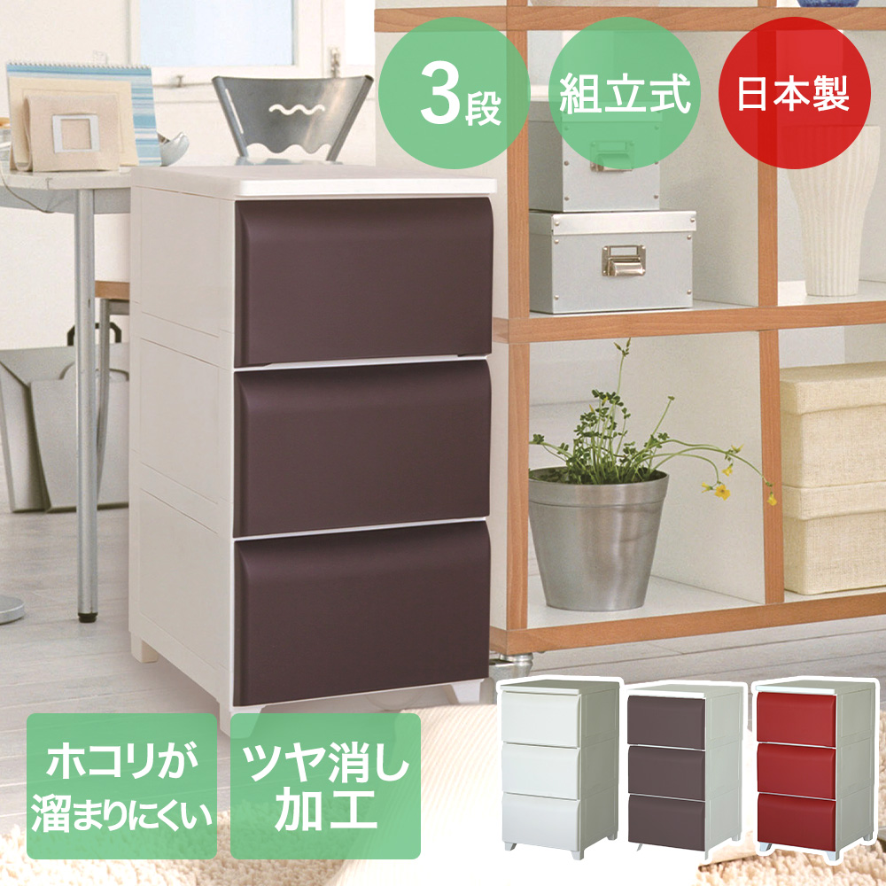 側面・背面にパネル付きなので「ホコリをブロック・清潔収納」組立式スリムチェスト3段。