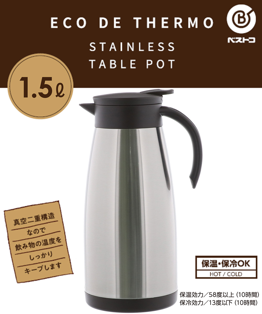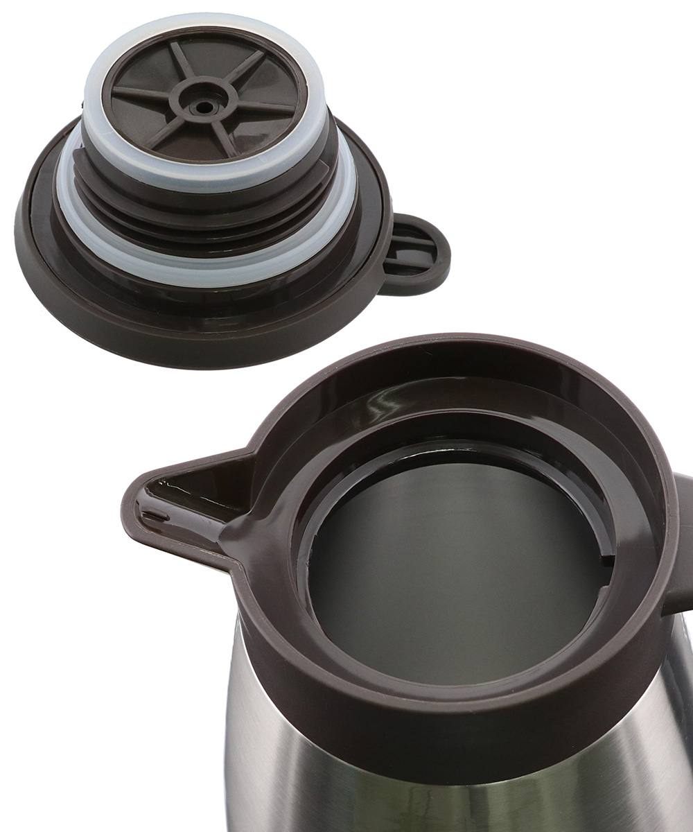 本体内側:18-8ステンレス鋼 本体外側:ステンレス鋼 口金・ハンドル:ポリプロピレン ふた栓:ポリプロピレン 開閉レバー:ABS樹脂 パッキン:シリコーンゴム