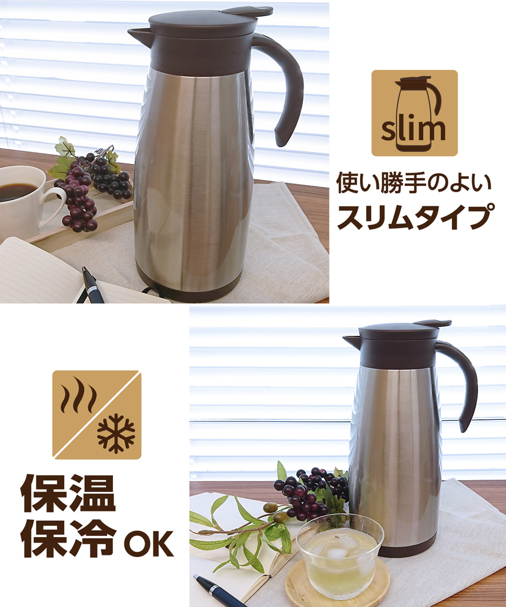 レバーを押すだけで注げるワンタッチ栓。真空二重構造で温度をしっかりキープ。