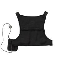 ●市販のモバイルバッテリーを電源として使用。接続はベストから伸びるUSB端子コードをバッテリーに差し込むだけで簡単。